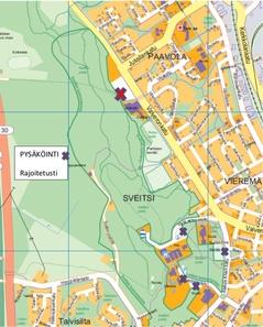 Kisakeskuksesta opastus pysäköintialueelle Vaiveronkatua pitkin