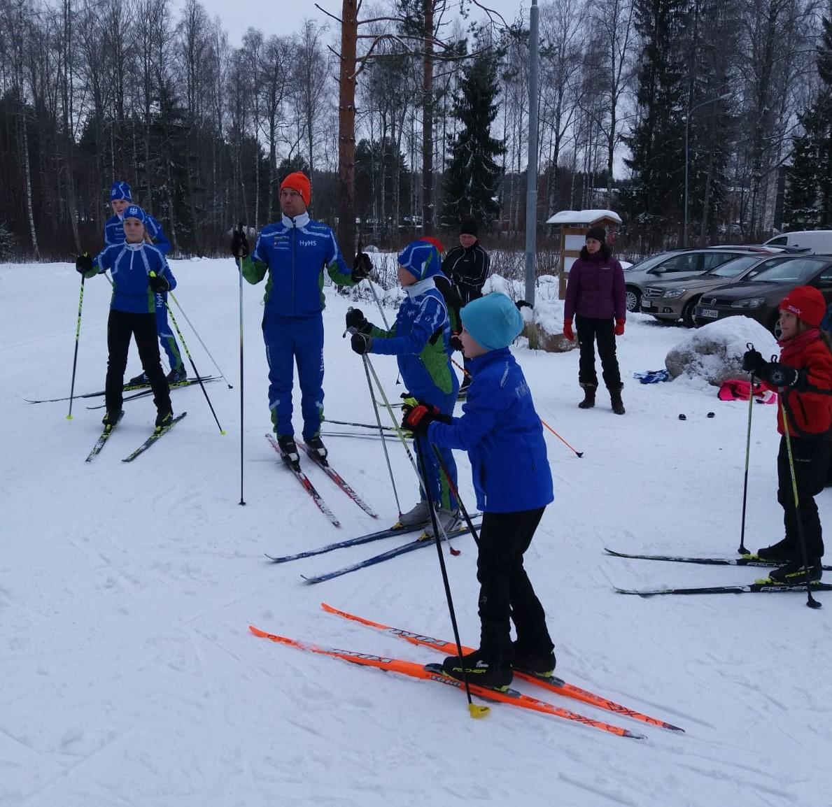 Kokoontuminen jäähallin hiekkaparkissa klo 18.00 Tyyli VAPAA. Viikolla 8. eli hiihtolomaviikolla ei ole hiihtokoulua!